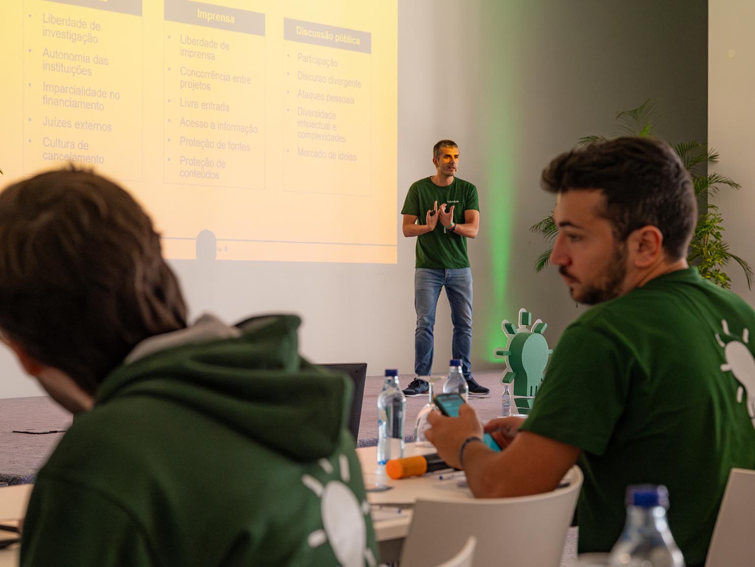 Foi fantástico! Num ambiente descontraído e de grande camaradagem, num espaço no meio da natureza e perto do mar, oradores, staff e participantes partilharam todas as actividades e as mesas de refeição, onde decorreram interessantes conversas. Tivemos um DJ, a animar a primeira noite e voltámos a ter um concerto ao vivo, com os incríveis “OH MY DOG!“, na segunda noite. As actividades “LIBERALYMPICS“ regressaram com um grandioso e divertido QUIZZ +Liberdade e com um Concurso de pitches sobre IA. Também tivemos mais um inesquecível espectáculo de Stand Up Comedy, o nosso já famoso “STAND UP FOR LIBERTY”.